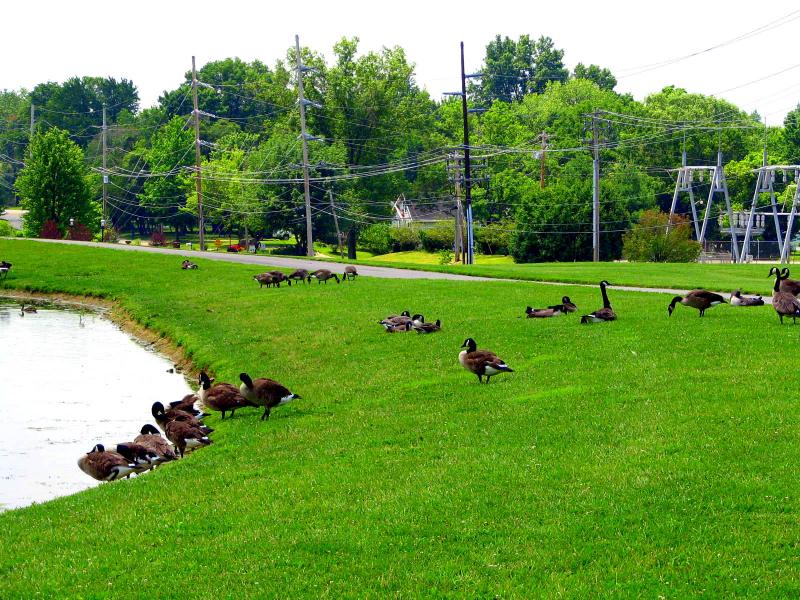 Canada geese are probably the most adaptable and tolerant of all native waterfowl. If left undisturbed, they will readily establish nesting territories on any suitable pond, be it located on a farm, backyard, golf course, apartment or condominium complex, or city park. Most people will welcome and start feeding the first pair of geese on their pond, but these geese will soon wear out their welcome. In just a few years, a pair of geese can easily become 50 to 100 birds. The feces will foul the areas around the pond and surrounding yards and also damage the lawn, pond, and other vegetation. Geese that are fed will lose their fear of humans and attack adults, children, and pets during the nesting season (March through June). DO NOT FEED GEESE. Feeding bread, corn, potato chips, popcorn, and other human food items harms the geese and sets the scene for goose attacks on people. Canada geese are protected under both the Federal Migratory Bird Treaty Act and Ohio state law. This protection extends to the geese, gosling, nests, and eggs. Non-lethal scare and hazing tactics, which do not harm the geese, are allowed. These tactics include: pyrotechnics, dogs, barriers, a grid on the pond, laser pointers (at night), distress calls, or grape-flavored repellent such as Flight Control.